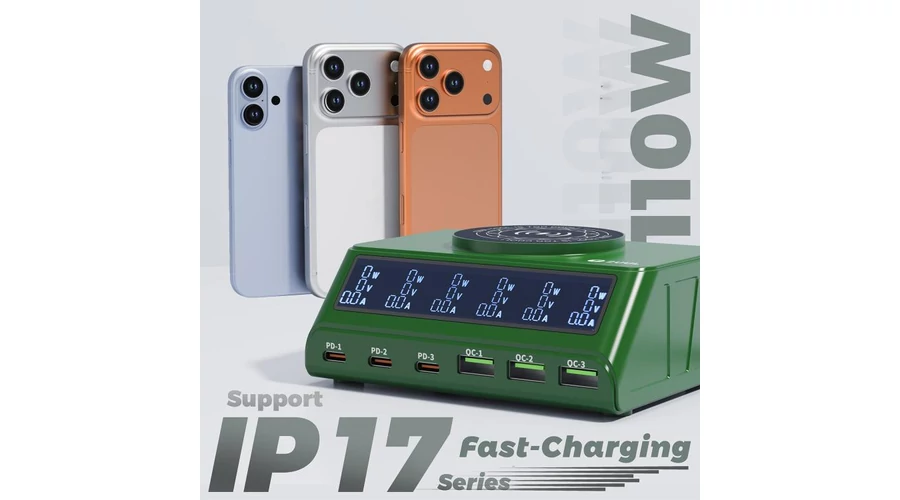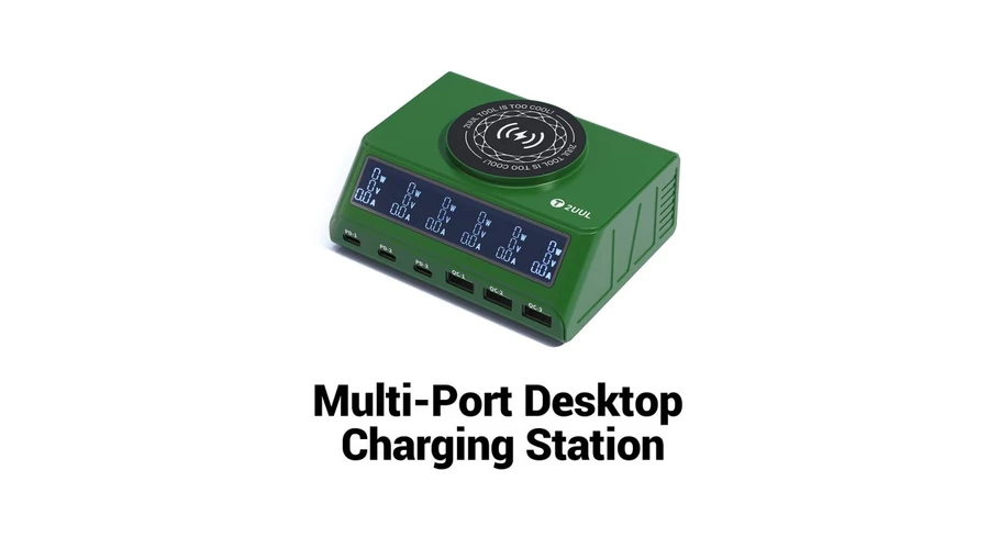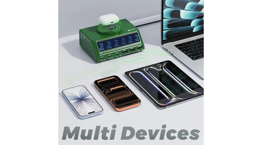 2. Többportos kialakítás több eszköz egyidejű töltéséhez: Az USB-C és USB-A portok, valamint a vezeték nélküli töltőpad lehetővé teszik több eszköz (telefonok, táblagépek, laptopok, tartozékok) egyidejű töltését.