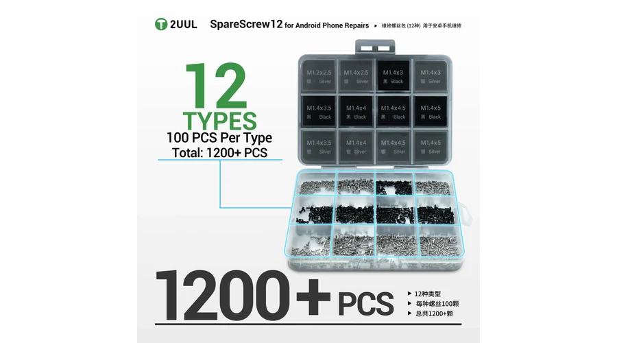 2UUL Phillips, Csavarkészlet okostelefonhoz (SpareScrew12) (1200 db)