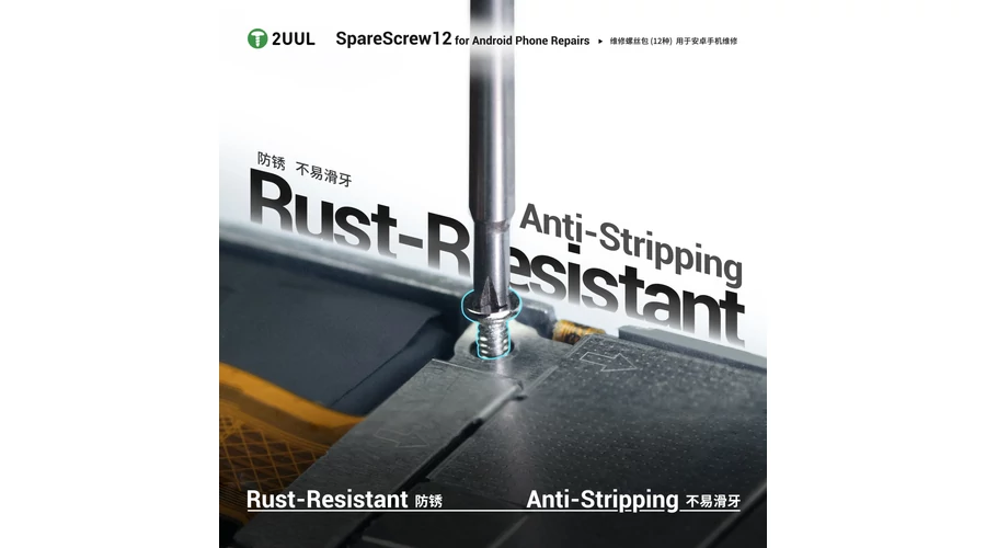 - A 2UUL SC22 SpareScrew12 pótcsavarokat kifejezetten Apple iPhone javításhoz tervezték.
