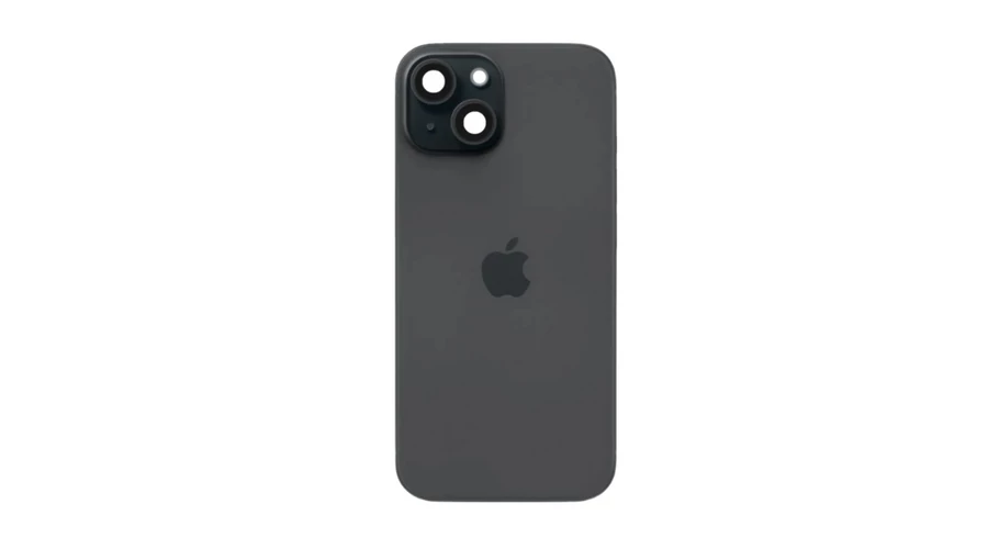 Apple iPhone 15 Plus, Akkufedél + ragasztó, (nagy lyukú verzió), fekete (OEM)