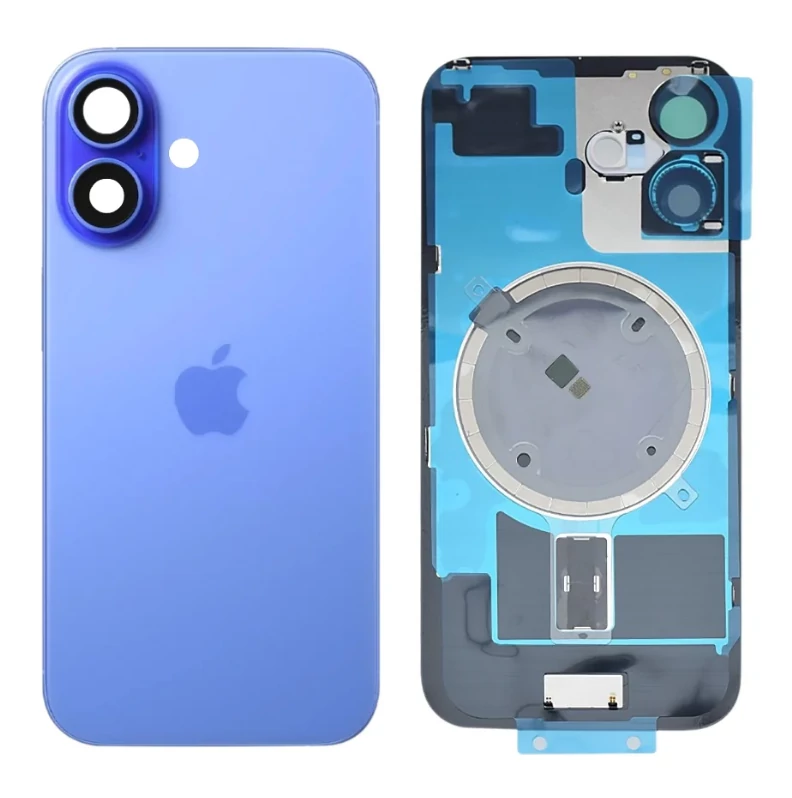 Apple iPhone 16, Akkufedél, kamera lencsével, mágneses gyűrűvel, fémlemezzel, kék, Ultramarine (OEM)