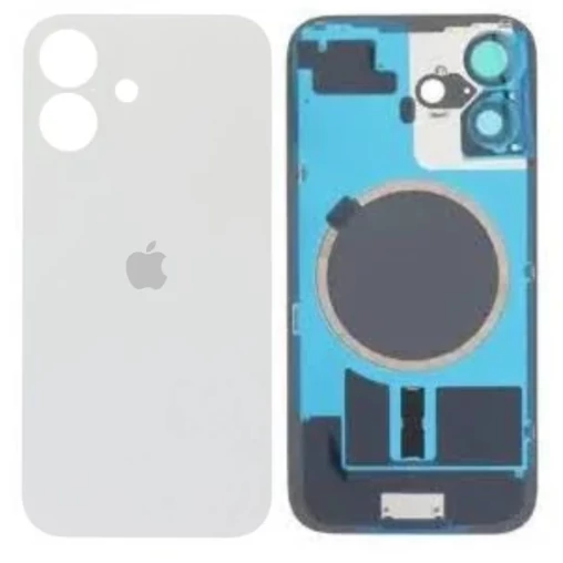 Apple iPhone 16, Akkufedél, kamera lencsével, mágneses gyűrűvel, vezeték nélküli töltőchippel és vakuval, szerelt, fehér