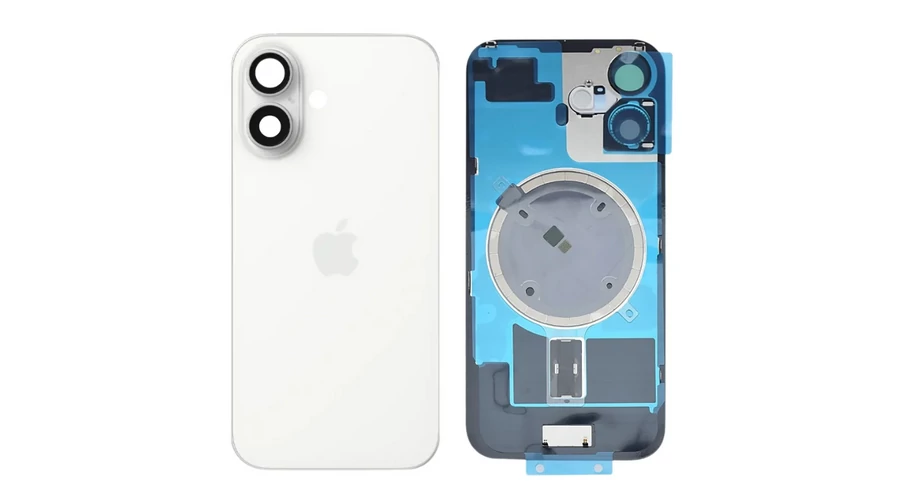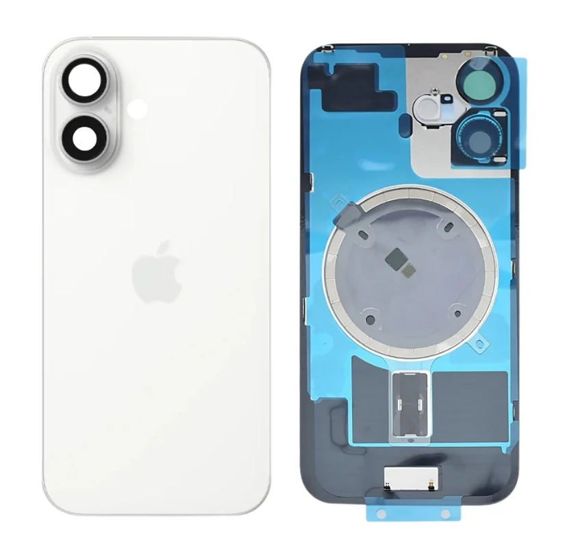 Apple iPhone 16 Plus, Akkufedél, kamera lencsével, mágneses gyűrűvel, fémlemezzel, White Titánium (OEM)