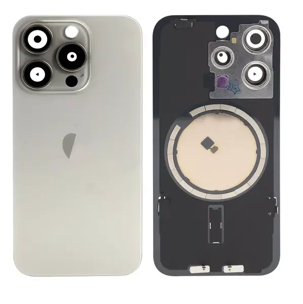 Apple iPhone 16 Pro, Akkufedél, kamera lencsével, mágneses gyűrűvel, fémlemezzel, szürke, Natural Titanium (OEM)
