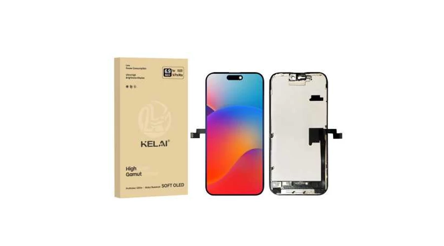 Apple iPhone 16 Pro Max, LCD kijelző érintőplexivel (SOFT OLED 120HZ KELAI IC CSERE TÁMOGATÁS EREDETI MÉRET ÉS VASTAGSÁG), fekete