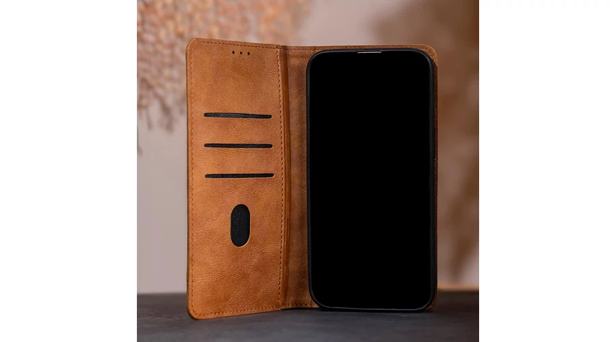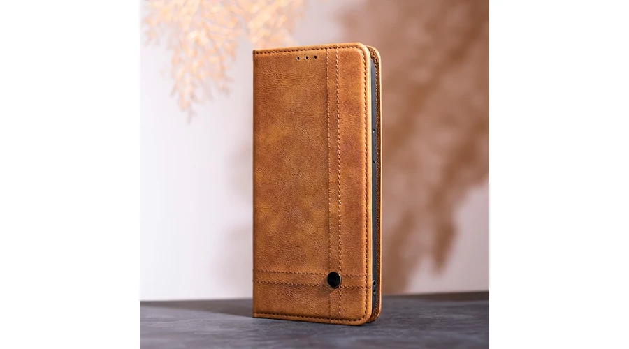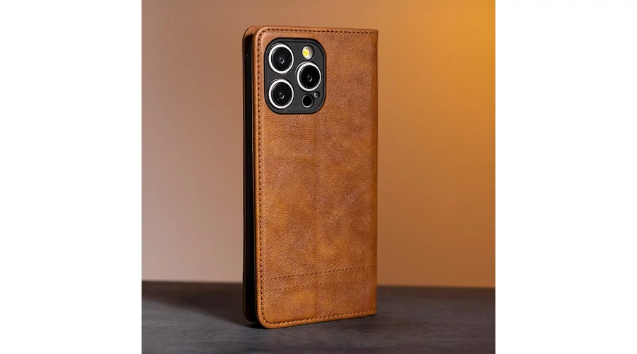 Apple iPhone 17 Air 6,6", Oldalra nyíló flip tok, Smart Seam, barna