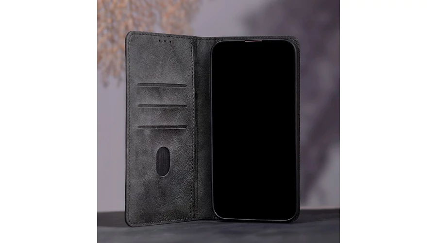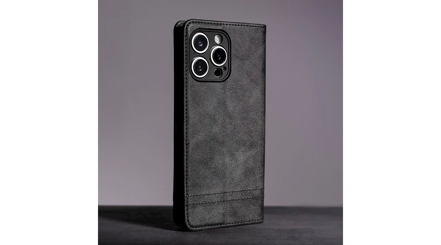 Apple iPhone 17 Pro Max, Oldalra nyíló flip tok, Smart Seam, fekete