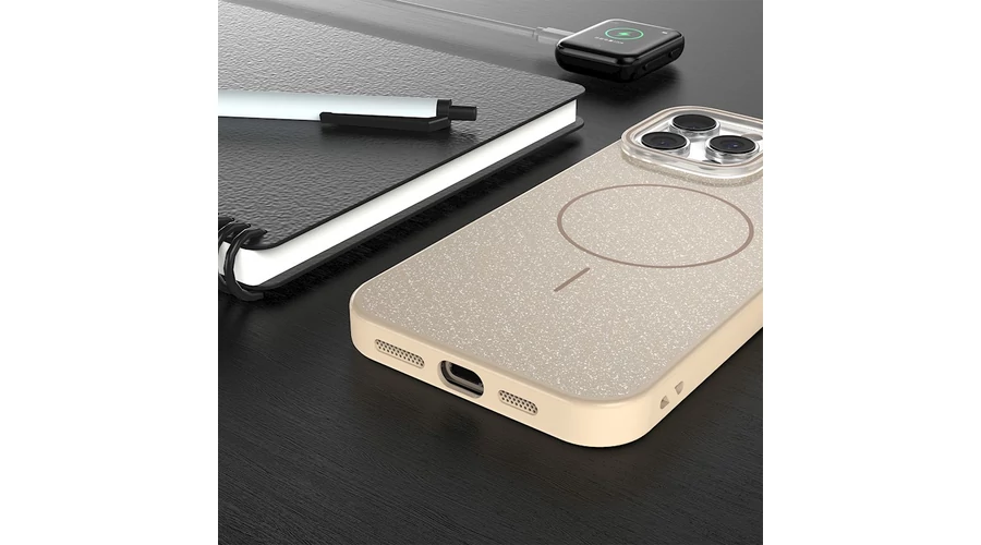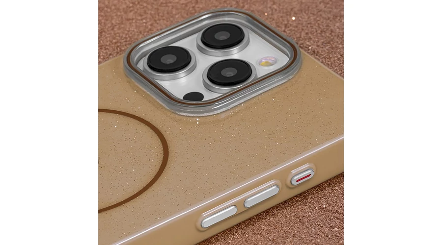 Apple iPhone 17 Pro Max, Szilikon tok, Thin Mag Glitter, barna
