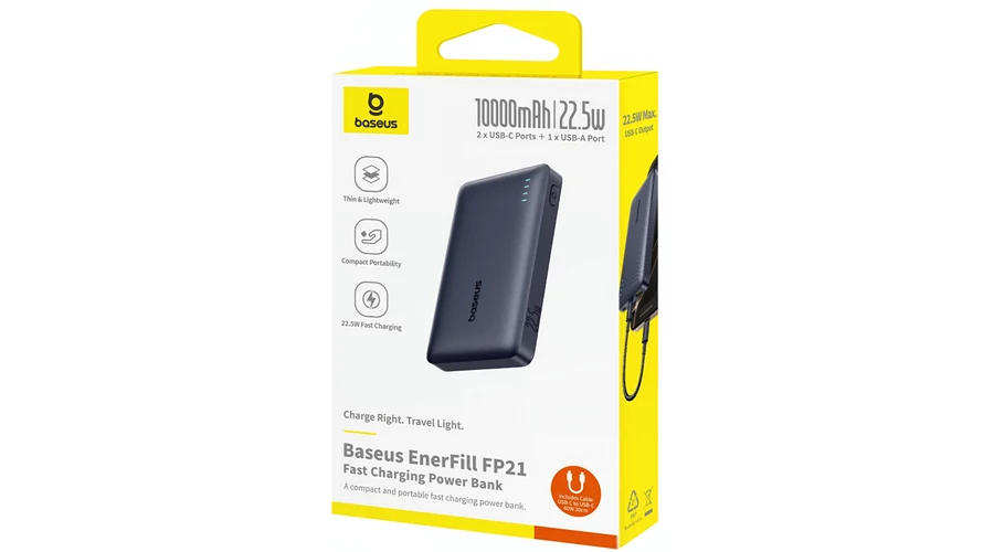 A Baseus EnerFill FP21 külső akkumulátor tökéletes megoldást kínál eszközei töltésére, bárhol is legyen.