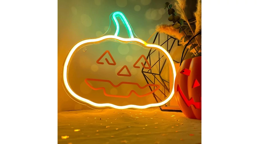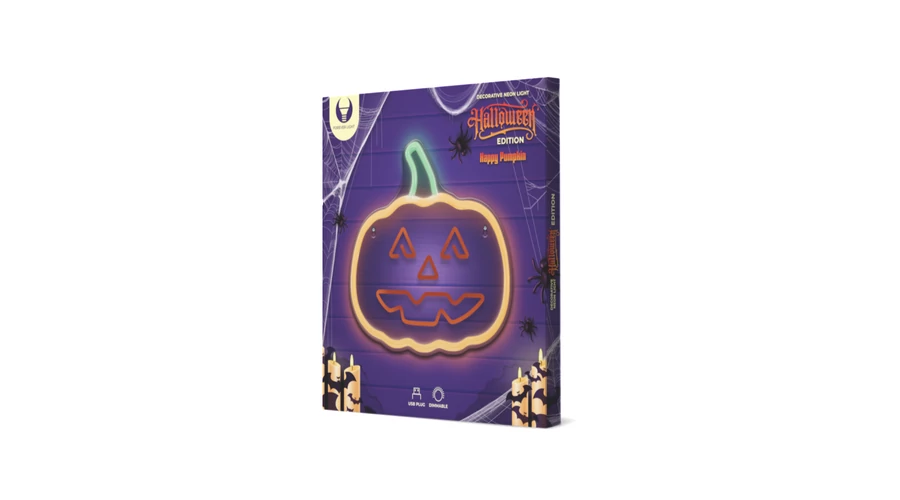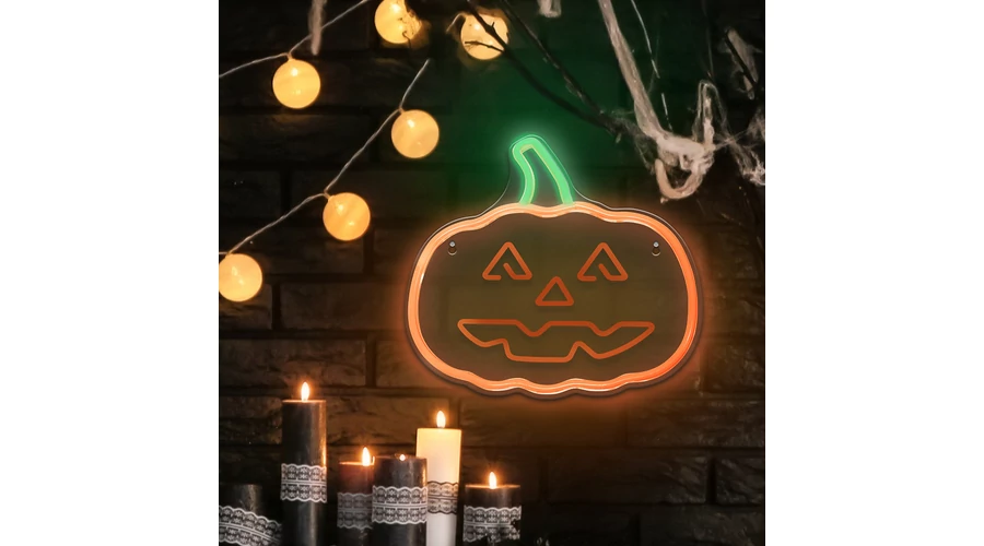 Forever FPNE10 Neon LED Falra akasztható dekorációs lámpa, Halloween Pumpkin, narancssárga-zöld