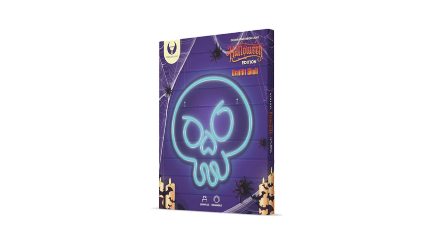Forever FPNE15 Neon LED Falra akasztható dekorációs lámpa, Halloween Koponya, kék