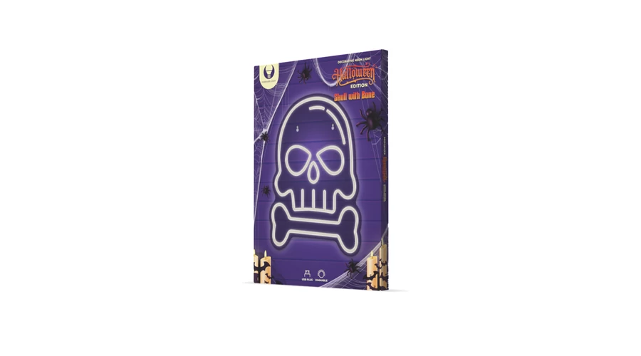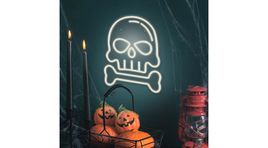 Forever FPNE18 Neon LED Falra akasztható dekorációs lámpa, Halloween Koponya, fehér