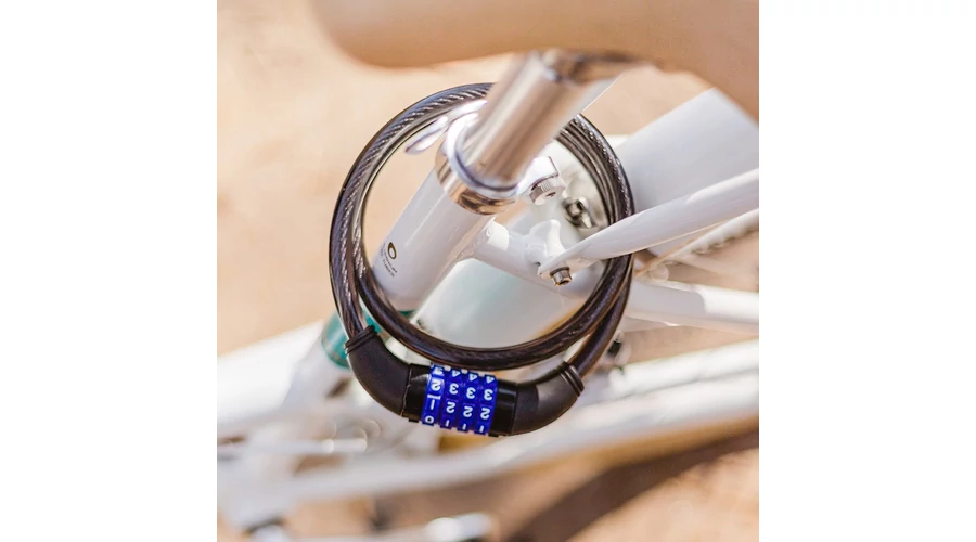 Spirálzár kerékpárhoz. A kábel műanyag borítású, hogy megvédje a fényezést a karcolásoktól.