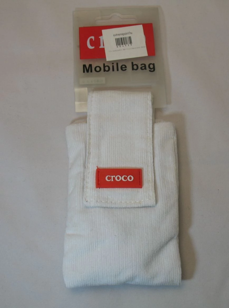 Nyakpántos tok, álló Croco tépőzáras (7x12 cm), fehér