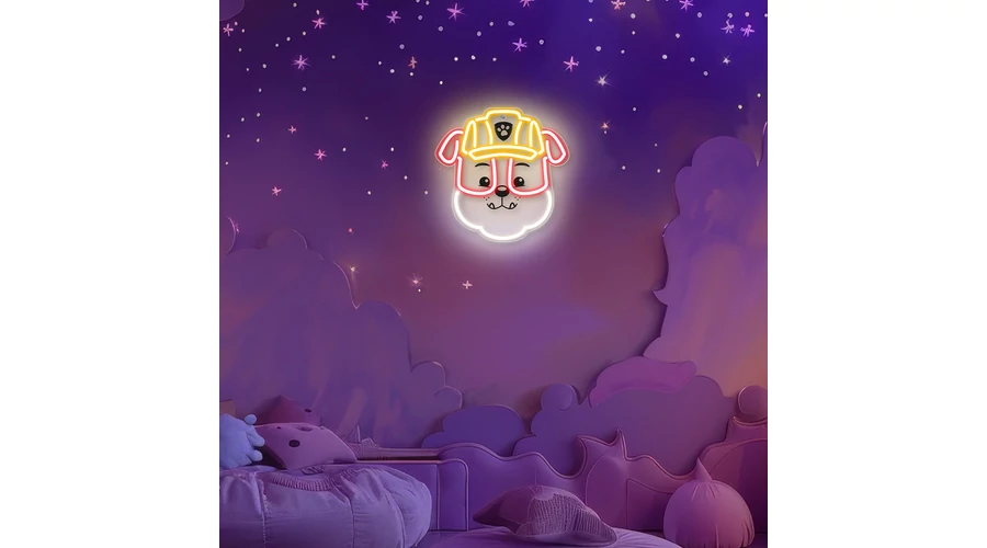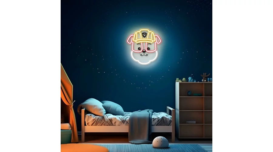 Paw Patrol OW-13044 Neon LED Falra akasztható dekorációs lámpa, Mancs őrjárat - Rubble