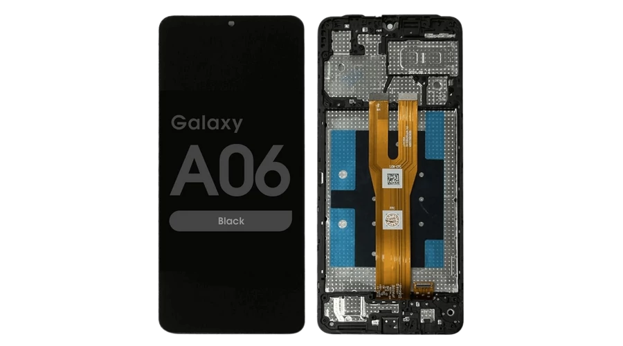 Samsung A065 Galaxy A06, LCD kijelző érintőplexivel és előlap kerettel, fekete (GYÁRI)