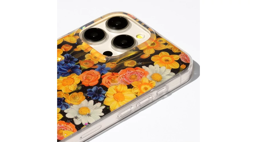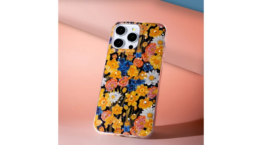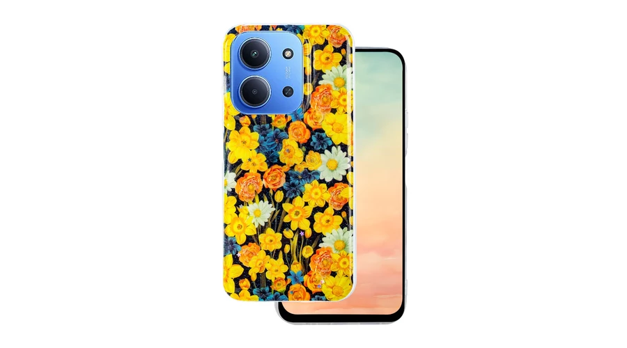Tel Protect Flower - egy átlátszó tok, egyedi virágmintával díszítve.