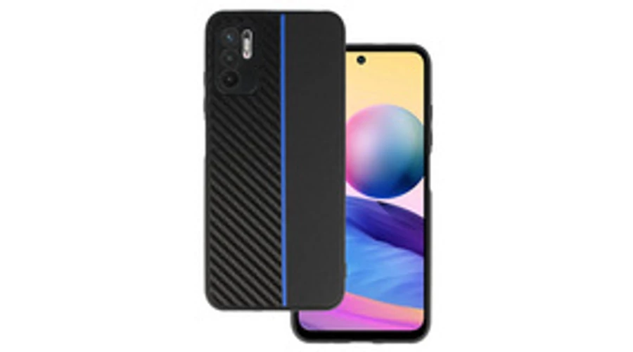 Xiaomi Redmi Note 10 5G/Poco M3 Pro/M3 Pro 5G, Szilikon tok, Carbon, fekete (kék szíjjal)