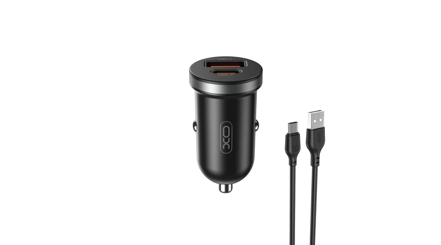 XO CC56, Szivargyújtós töltő, PD QC 30W 1x USB-A + 1x USB-C + USB-C kábel, fekete (GYORS TÖLTÉS)